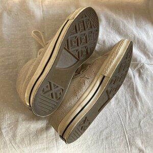 Rare hard to find long hair suede converse one star mid in the color egret. These shoes are in really nice shape I wore them less than a handful of times. If you wipe them down a bit they’ll look almost new.