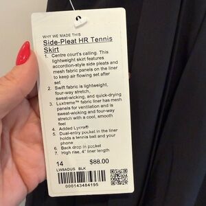Lululemon Side-Pleat High-Rise Tennis Skirt Size 14 Black NWT
