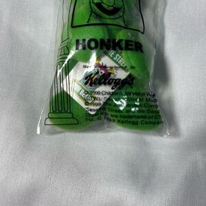 Add a rare piece of 90’s nostalgia to your collection with this Vintage 1999 Honker Green Monster Sesame Street Kellogg’s Mini Beans plush figure! This adorable green Honker character was part of the popular Kellogg’s Mini Beans promotion and is becoming harder to find in brand new condition.