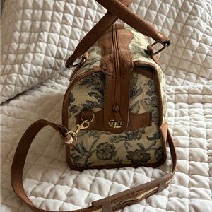 ~Very Good Condition 🤩 CLEAN 🧼 ~Very Roomy!! Size=(13x9x7)** Note the cool bronze/gold metal accents & closure hardware 🤩~Great for weekend or vacation carry on bag! Can also be used as bigger doctor style 💼 bag!! Pretty 😍 Tapestry:) ~On Trend item for 2026😃 Gab her now!! 💼 #Tapestry #retroluggage