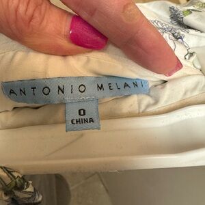 Chic floral dress by ANTONIO MELANI. Comes with matching floral belt , worn once for a wedding, some tan on inside, can’t be seen , has been dry cleaned