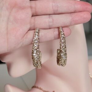 Sparkling gold-tone hoop earrings with clear crystal pavé. Lightweight and eye-catching. Perfect for day-to-night wear. Gold color adds a refined, versatile shine.