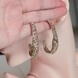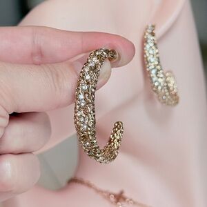 Gold Crystal Pavé Textured Earrings - Elegant Women's Jewelry