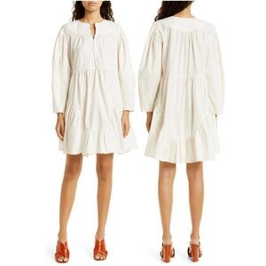 Ulla Johnson Bone Leiko Long Sleeve Cotton Shift Dress Size 10
