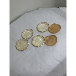 Vtg Capiz Shell 4" Gold/Brass Tone Trim Scalloped Coasters 2 Orig. Inserts