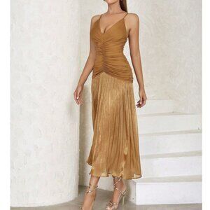 Brownish with metallic shimmer Ruched Front Spaghetti Strap Cami Dress