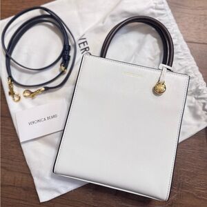 NEW Veronica Beard Mini Shopper Leather Tote Crossbody Bag White Colorblock