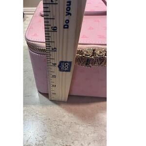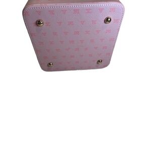 Features: Pink, Monogram Pattern, Gold Hardware, Zip Closure, Top handle, Removable top tray