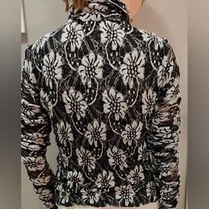 Project Runway Season 3 competitor Angela Keslar NWT black and white lace top with exaggerated sleeves.