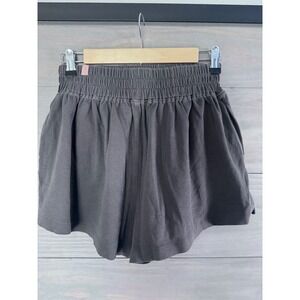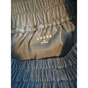 Lunya Organic Pima Cotton Pajama Shorts Black Grey High Waist Smocked Small