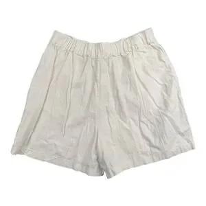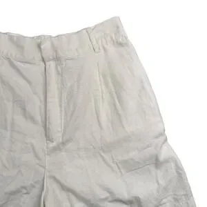 Love Tree Women Linen Blend Pleated High Waist Shorts White Cream Large L 580
