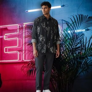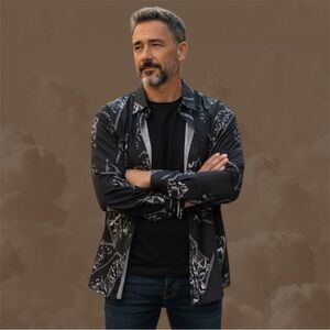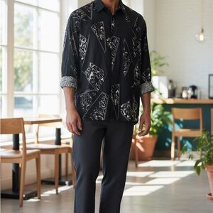 Men’s Vintage style Stylish Black and Gray Graphic Shirt Jacket new without tags