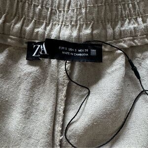 Zara Linen Viscose Wide Leg Pull On Pants Coastal Minimalist Sand Sz Small NWOT