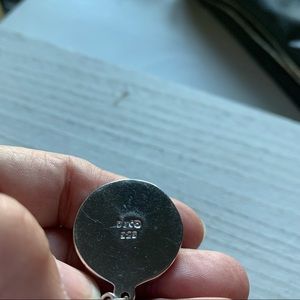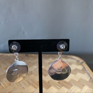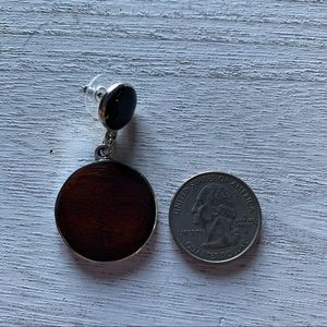 Great versatile earrings that go with many outfits. Stamped 925 authenticating their sterling silver content. These post earrings each have 2 round disks. The top is black enamel and bottom is larger and brown wood grain look enamel. New backs have been added to them. Worn several times and carefully taken care of. In excellent used condition.