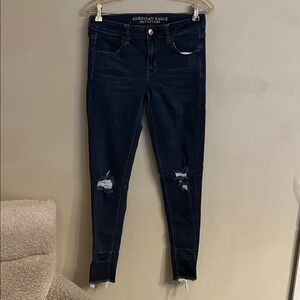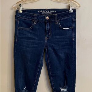 American Eagle Outfitters Dark Wash Jegging Distressed Raw Hem Size 6