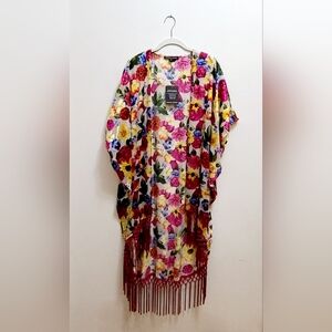 Boston Proper Women's XS/S Novelty Fringe Kimono Jacket Floral Boho Cove…
