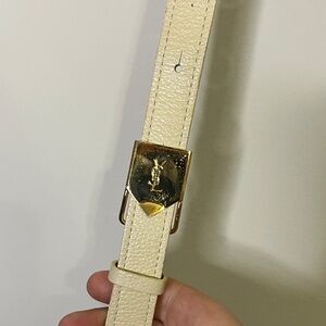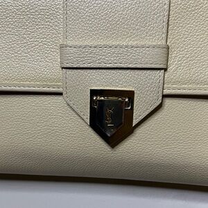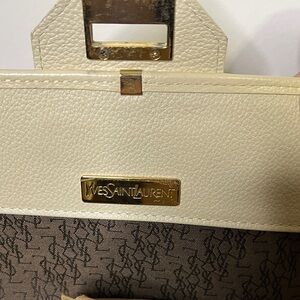 Chic Yves Saint Laurent Adjustable Strap shoulder bag, leather. Features a sleek design with a signature logo clasp. Gold hardware. EUC.