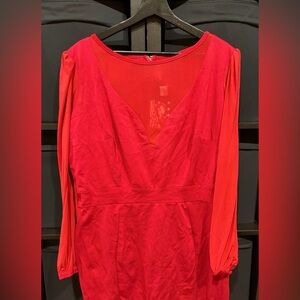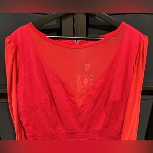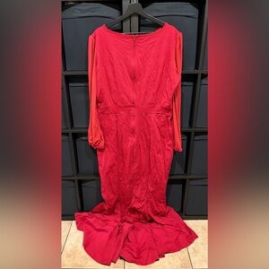 The dress features a unique solid red color, balloon sleeves, and a mermaid or bodycon style, making it a versatile choice for any occasion.