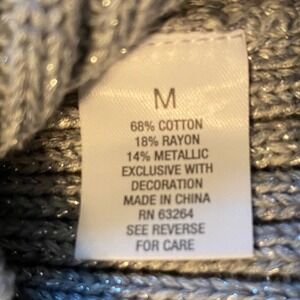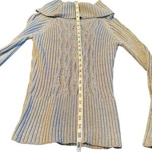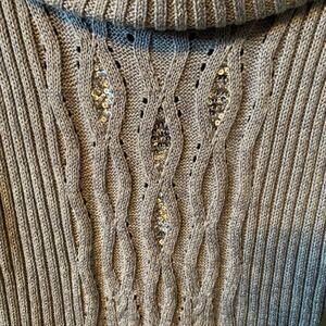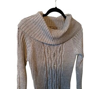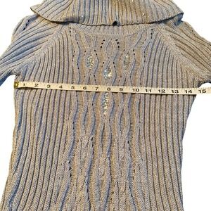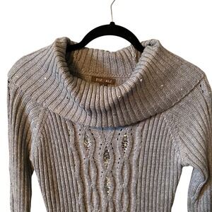 ROZ & ALI Gray Ribbed Metallic Cowl Neck Sequin Accent Sweater Size M