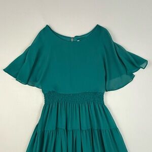 Danny & Nicole Dress Women's Size 6 Teal Midi Dress with Flowy Sleeves Pleated