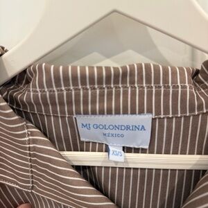 Mi Golondrina Brown Striped Maxi Dress with White Floral Accents