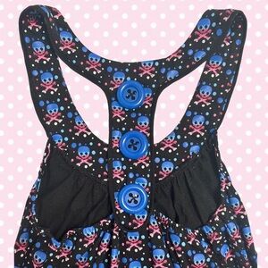 vintage Morbid Threads rainbow skull babydoll top ♡ sold at hot topic back in the 2000s!! features big blue buttons on the back and is in excellent condition! this is the CUTEST top ever!! i adore it but i dont wear it enough anymore so i figured id let it go to a new home ^_^