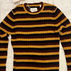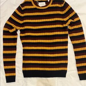 Ultra-soft 100% cashmere in collegiate Carrington Stripe. Crew neck, bracelet-length sleeves, a fitted silhouette, and overall ribbing. Never worn.