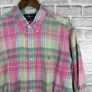 Ralph Lauren Mens XL Madras Plaid Spring Easter Shirt Short Sleeve Button Down