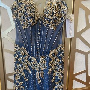 Ellie Wilde Slate/Gold Prom Gown EW37055 Size 2