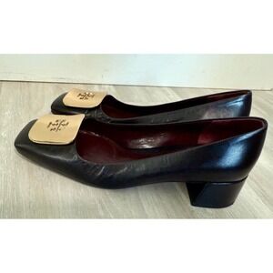 Tory Burch Eleanor Pump Women 6.5M Black Excellent Gold Logo Block Heel Leather