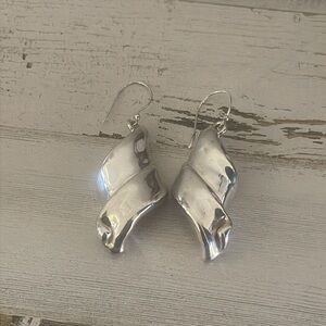 Silver Electroform Twisted Drop Earrings. Shadowing from camera, in excellent condition. Marked Bat Ami, 925. Handcrafted in Israel.