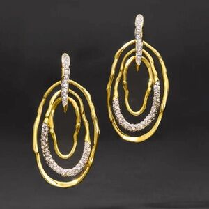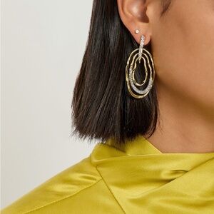 Inspired by the lightness & movement of mobiles, these pavé crystal encrusted 14k gold plated spear earrings suspend organic lines of highly sculpted metalwork.