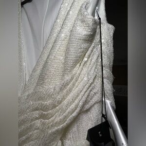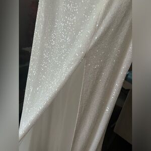 MAC DUGGAL • WHITE LONG SLEEVELESS SEQUINS GOWN 26598• NWT