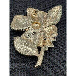 Vintage Enamel Rhinestone and Gold-Tone Dogwood Flower with Bee Brooch, Unsigned