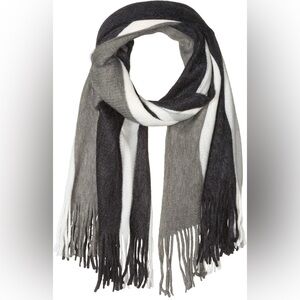 Steve Madden Oversized Black, White, and Gray Fringed Scarf