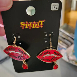 Spirit Halloween Women's Red Kiss Me Deadly Dangle Vampire teeth lips Earrings