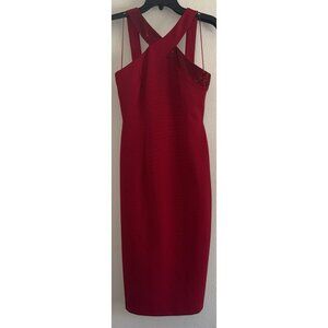 Women’s Adrianna Papell Cocktail Dress, red, Beaded Halter, lined, Knee Length, back slit, zip close