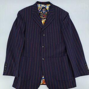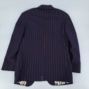 Robert Graham Blazer Mens L Wool Navy Blue Orange Pinstripe Guitar Lining Jacket