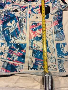 Adidas Japan National Team Sp Ed Dragon Ball Z Vegeta Soccer Jersey. This unique shirt features vibrant manga-style graphics of Vegeta across the front and back.