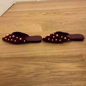 Amazon Burgundy Mules with Silver and Gold Studs