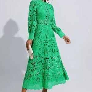 Catchall Green Lace Midi Dress Emerald High Neck Long Sleeve S NWT