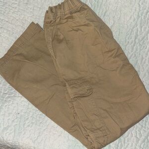 Comfortable tan cargo pants. Elastic waistband with adjustable waist. Perfect for casual wear.