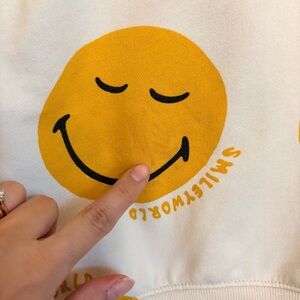H&M x Smiley World Sz 6x-7 Pullover Hoodie Sweatshirt Cream Yellow Smiley Face