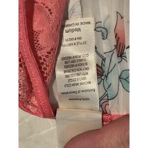Color: White base with multicolor floral and butterfly print and contrasting pink trim and lace