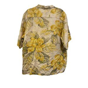 Tommy Bahama Yellow Floral Silk Button-Down Hawaiian Shirt Size L