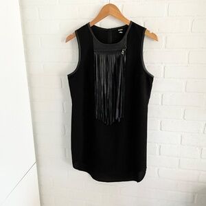 RUDSAK Leather Fringe Micro Dress Moto Biker Black Statement Sz M