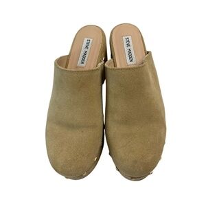 ANTHROPOLOGIE X STEVE MADDEN Brooklyn Clog Taupe Suede Leather Size 7.5