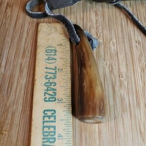 Vtg THE CHEROKEES 3 Pc 11" Powder Horn & Measurer w/Leather Strap & Wood Plug