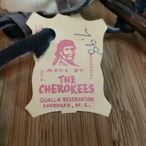 This was bought as a souvenir at the Qualla Reservation in Cherokee, N.C. It would make a nice wall hanging. The wood bottom would need to be adjusted for it to be functional. See pics.