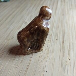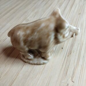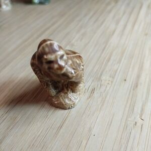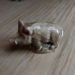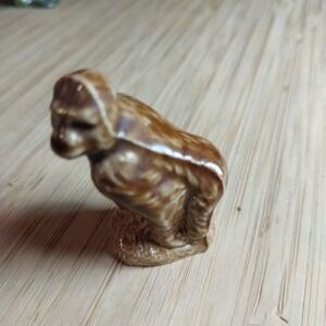 This lot of 4 miniature porcelain ceramic figures from the Wade Whimsies Animals Variety set includes a squirrel, gorilla, wild boar, and hippopotamus. Made in England, these red-colored figurines are part of a retired, limited edition collection that showcases whimsical animal characters. Standing at 1" in height, these glazed figurines are a charming addition to any collection of decorative collectibles, perfect for animal lovers and collectors alike.